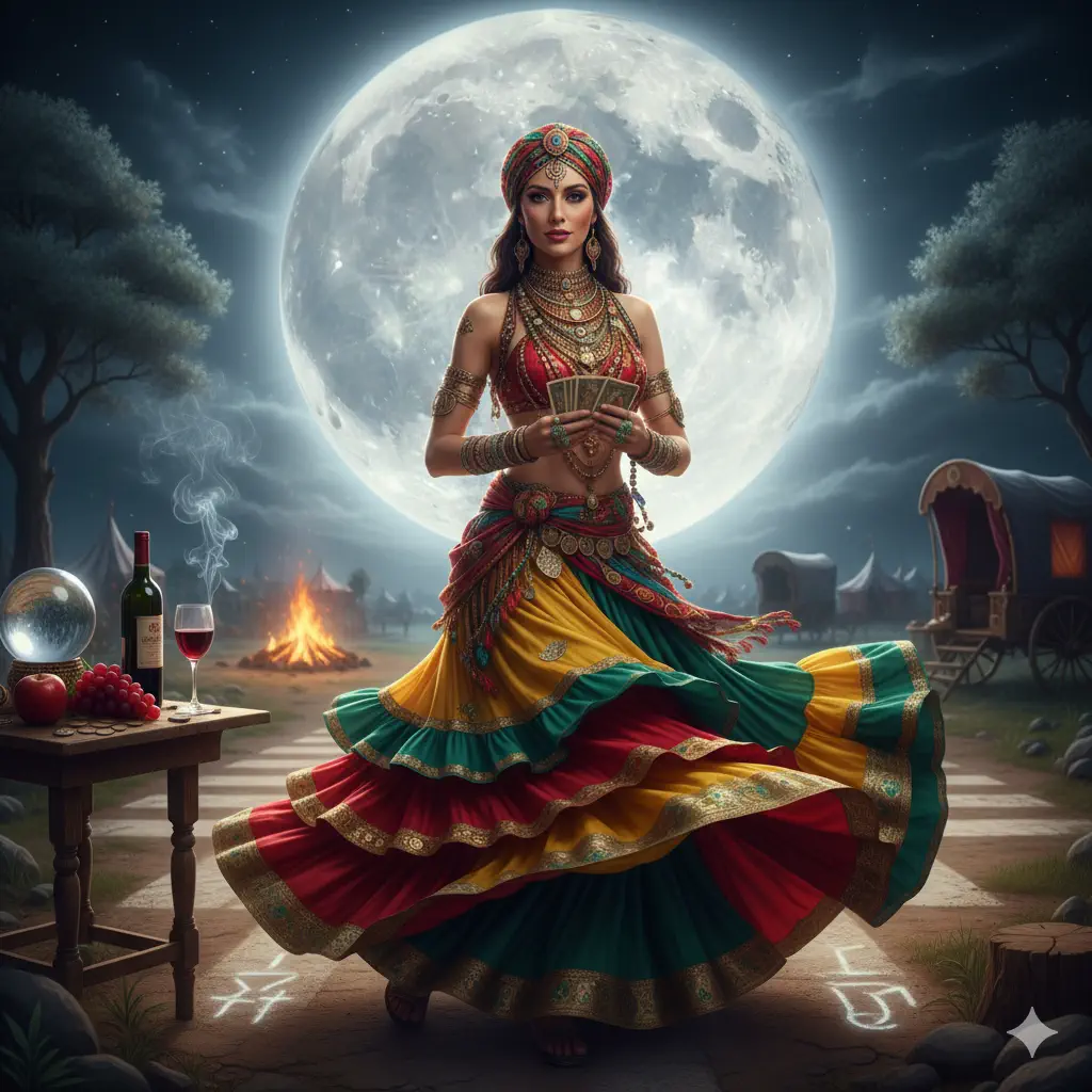 - Origen en el Desencarne: Cigana da Lua no es una deidad clásica, sino un espíritu que encarnó en vida como una mujer gitana. Después de su desencarnación, pasó a trabajar en la vibración de Exu y Pomba Gira. Son almas que dominaron las artes gitanas (adivinación, herbolaria, danza) y que eligieron la energía astral de la Luna como su principal punto de fuerza.