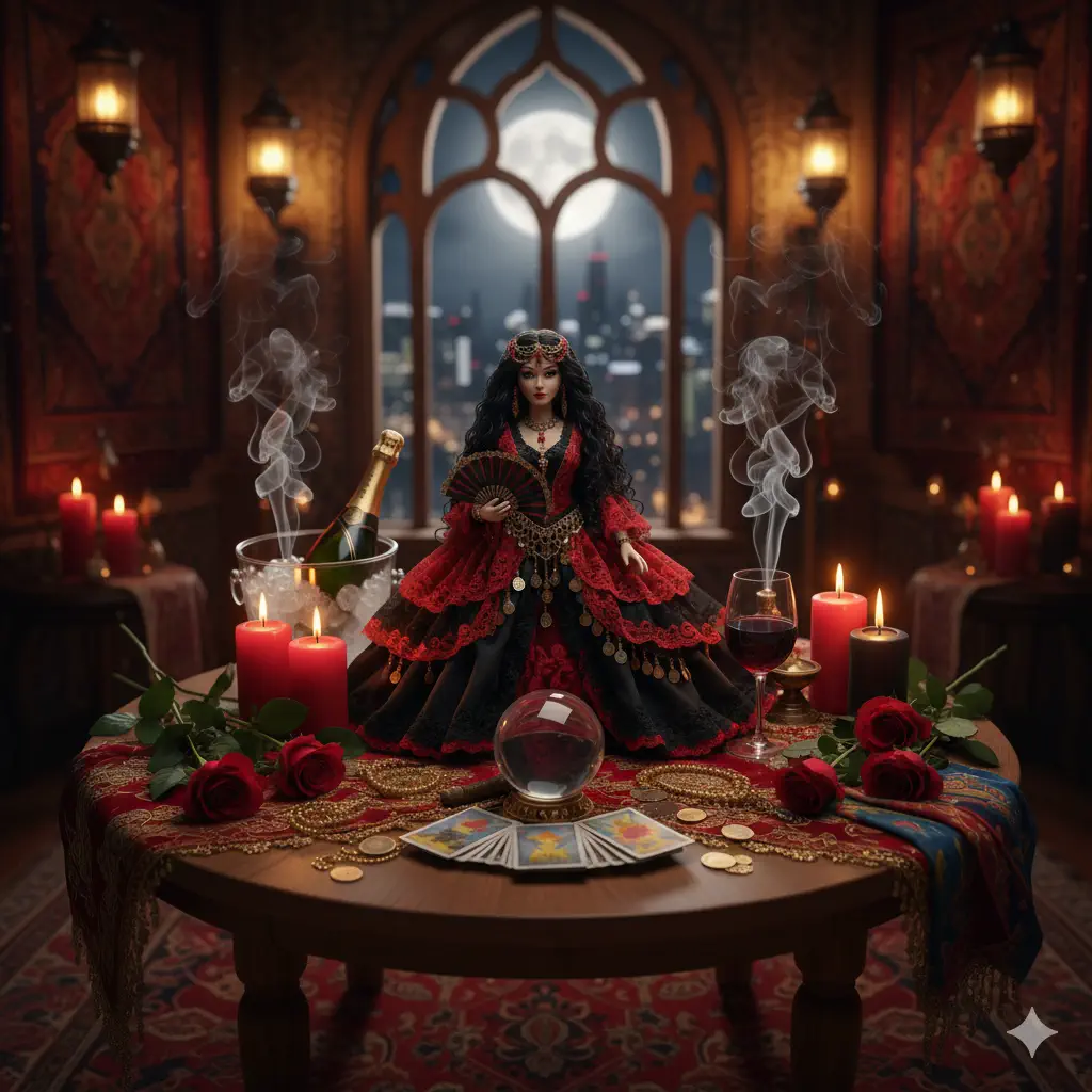 Pomba Gira Cigana da Lua es una de las entidades más fascinantes del panteón de la Umbanda, combinando la fuerza y la ley de las Pomba Giras con el misticismo, la libertad y la magia del Pueblo Gitano. Su conexión directa con la Luna la convierte en una maestra de la intuición, la adivinación y los ciclos femeninos. Es la fuerza que abre los caminos del amor, el comercio y el destino, trayendo alegría y verdad a quienes la invocan.