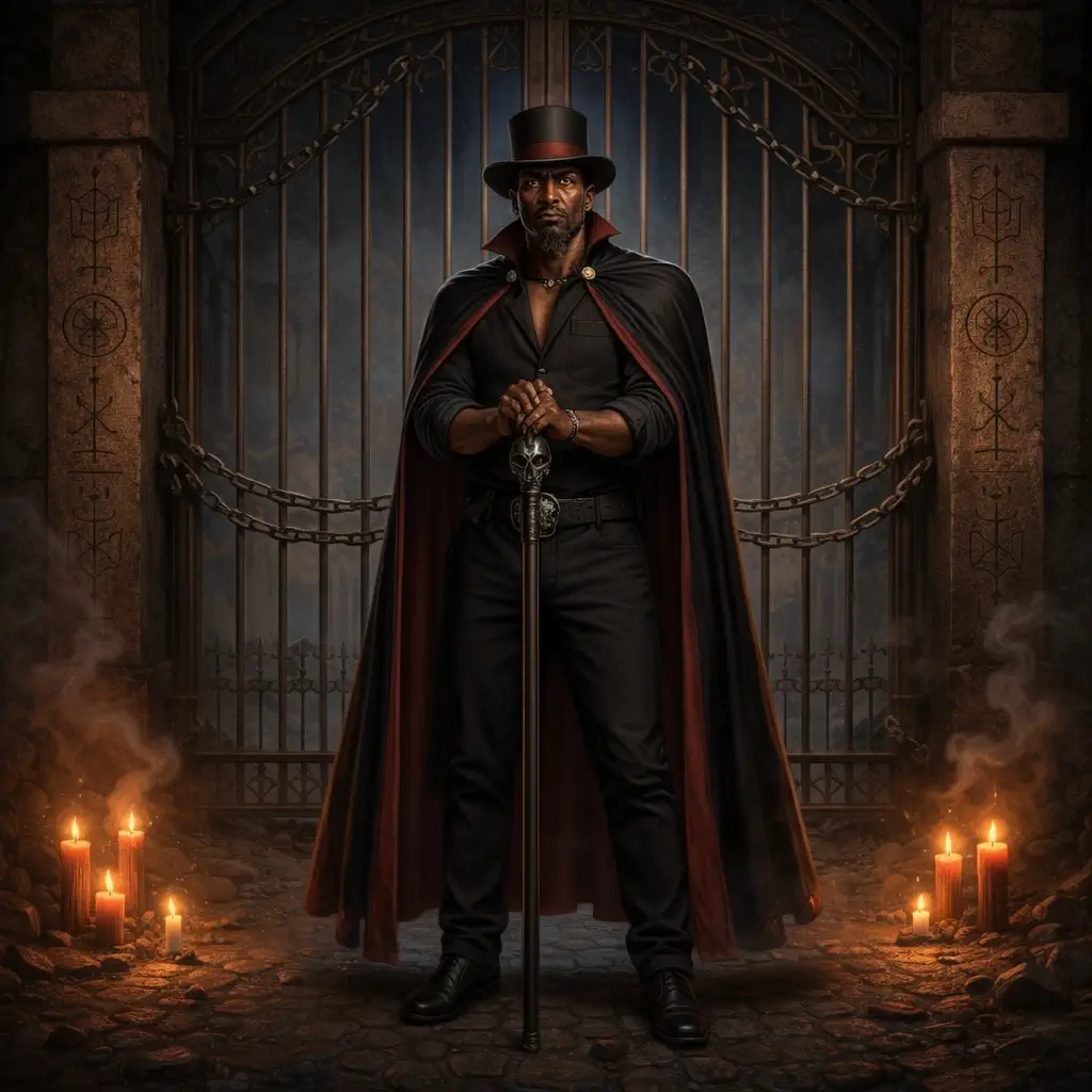 Exu Tranca Ruas es una de las entidades espirituales de más alta jerarquía en el panteón de la Umbanda y la Quimbanda brasileñas. Su nombre, que significa literalmente «Cierra Calles» o «Bloquea Caminos», es una clara declaración de su función principal: interceder en el destino de los individuos. Actúa como un implacable Guardián y Ejecutor de la Ley Divina, capaz de abrir sendas estancadas o cerrar el paso a enemigos, malas influencias o consecuencias kármicas negativas. Es un caballero de la noche, serio, sabio y extremadamente riguroso.