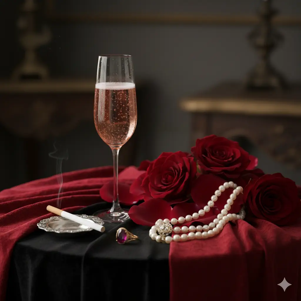 BebidaChampán (rosado o demi-sec), licores dulces.Lujo, celebración y el dulzor de la vida, mezclado con la fuerza de la liberación.